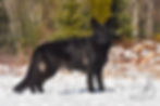 Ravenna is a daughter of our Vermeer and Tiramisu. She is a stunning girl with her mother's deep black coat. Hints of her father's undercoat can be seen in her sergeant's stripe and pantaloons. Her stunning amber eyes capture your attention right away - glowing as if lanterns are lit behind them. Everyone who sees her is captured by her unique beauty, and she is a fan favorite among the public who come to join our hikes.
